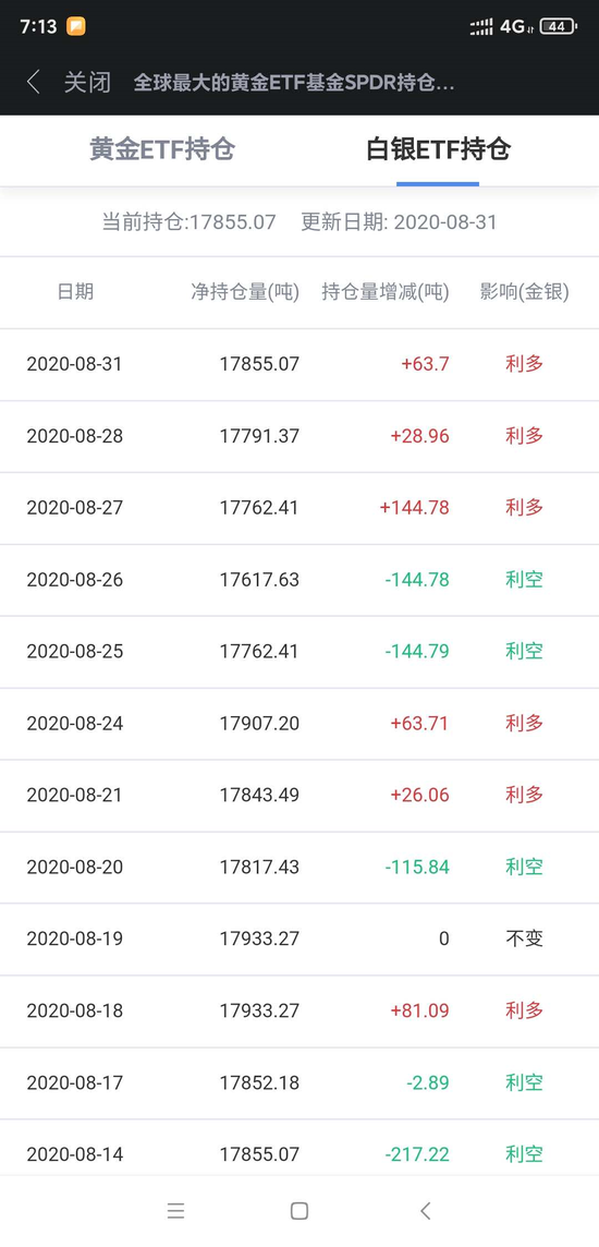 热点栏目全球最大白银ETF—iShares Silver Trust持仓较上日增加63.7吨,当前持仓量为17855.07吨。全球最大黄金ETF-SPDR Gold Trust持仓无变化。