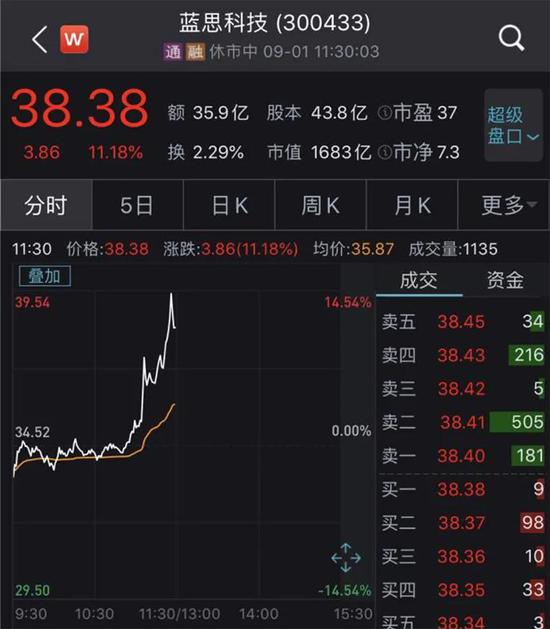 值得一提的是,上午11时左右,有媒体报道,大部分原欧菲光触控模组订单将由蓝思科技承接,蓝思科技股价应声上涨,截至午间收盘,蓝思科技大涨11.18%。