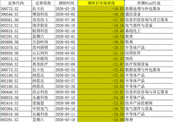 但也有公司接受调研后,二级市场并未买账,反而出现了大幅下跌。