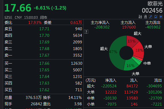 9月1日,欧菲光开盘一字跌停。澄清公告发布后,公司股价大幅反弹一度翻红。无奈抛压过大,最终收跌6.61%,报17.66元,股价创两个月新低。