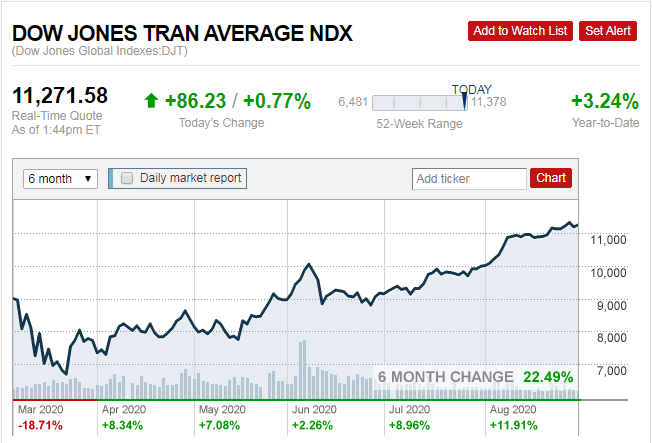 热点栏目原标题:道琼斯运输指数反弹75%,这是美国经济全面复苏的前兆吗