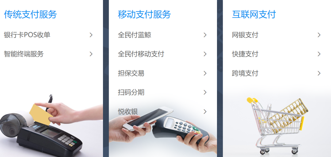 在产品方面,银联商务可分为支付服务、金融服务(理财和融资服务)、大数据与信息服务、营销增值服务、自助终端、金融科技服务以及CFCA七大类。其中,应用场景最广泛的支付服务包括传统支付服务、移动支付服务、互联网支付等。