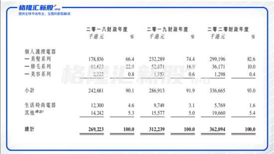 但背后也掩藏着盈利较为单一的风险。报告期内,公司大部分收益来自美发系列,包括吹风机、卷发棒和直发夹板等产品,分别占总收益约66.4%、74.4%及82.6%,占比不断上升。同期,修毛系列、美容系列两类产品的比重却不断下降,销售额也逐年减少。