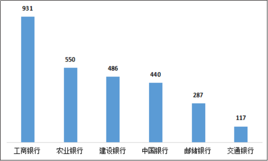 1.工商银行、农业银行、建设银行的个人贷款业务投诉量位居国有大型商业银行前三名。国有大型商业银行个人贷款业务投诉量的中位数为463件。其中,工商银行931件,占工商银行投诉总量的23.2%;农业银行550件,占农业银行投诉总量的21.8%;建设银行486件,占建设银行投诉总量的14.9%;中国银行440件,占中国银行投诉总量的5.2%;邮储银行287件,占邮储银行投诉总量的13.1%;交通银行117件,占交通银行投诉总量的3.8%。