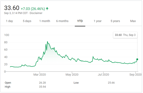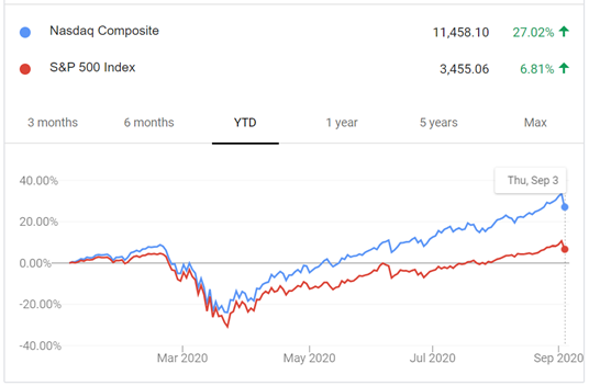 过去的几个月,特斯拉(TSLA)的市值疯狂增长,即使在拆股后仍然继续飙升超过12%,但9月1号开始下跌,周四更大跌9%。苹果公司(AAPL)的市值近期更是高达2万亿美元,超过了Russel 2000的2000家公司。然而这一切乐观的迹象都在本周四破灭,道指暴跌了1,026点,但收盘下跌808点,跌幅为2.8%。纳指下跌了5.8%,苹果(AAPL)和Zoom(ZM)等明星股也在周四大跌。而作为美股风向标的亚马逊(AMZN)未顶住压力,下跌至5%。根据Bespoke Investment Group的数据显示,本周四达成了纳斯达克6月至今的最大单日跌幅。