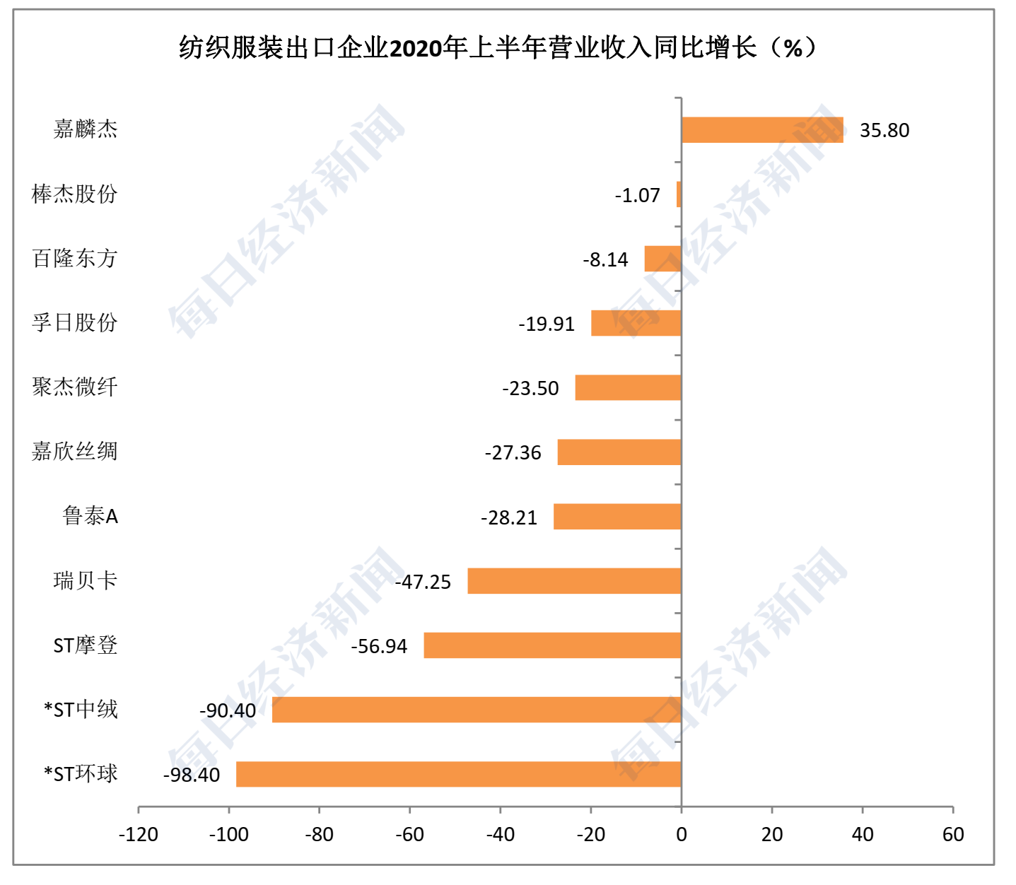 东方财富Choice数据显示,今年上半年,海外收入占比50%以上的纺织服装企业总计有11家,平均营业收入同比增长率为-33%。排名靠前的是嘉麟杰(002486,SZ)、棒杰股份(002634,SZ)和百隆东方(601339,SH),上半年营业收入同比增长率分别为35.8%、-1.07%和-8.14%。