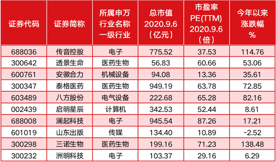 而如果撇开重仓股这一指标,观察QFII持股占流通股比例正向变动的公司,2020年中报持股比例最高的前10大公司分别为传音控股、透景生命、安徽合力、泰格医药、八方股份、启明星辰、澜起科技、山东出版、三诺生物、洲明科技。从这些公司的行业属性看,电子、医药生物类公司居多。