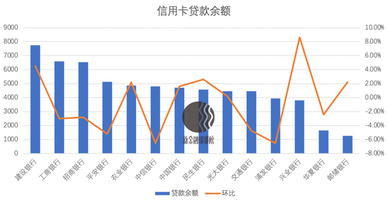 在14家银行当中,7家银行信用卡贷款余额较年初有所上升,但幅度都不大,最高的是兴业银行,增幅为8.61%;其余7家银行较年初小幅下降。