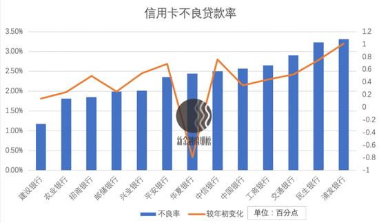 不良率增幅最大的是浦发,达到1.01个百分点;而华夏银行的不良率较年初下降0.79个百分点,达到2.44%——显示去年末该行信用卡不良率曾高达3.23%。