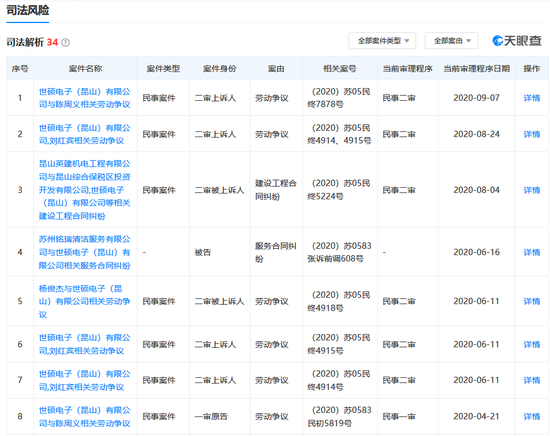 据天眼查显示,世硕电子(昆山)有限公司又名世硕电脑科技(昆山)有限公司,坐落于昆山开发区精密机械工业园,母公司为和联集团。主要从事高科技电子产品的生产,为全球五大笔记本电脑生产企业之一。该公司自今年4月以来,已有8起劳动争议案。
