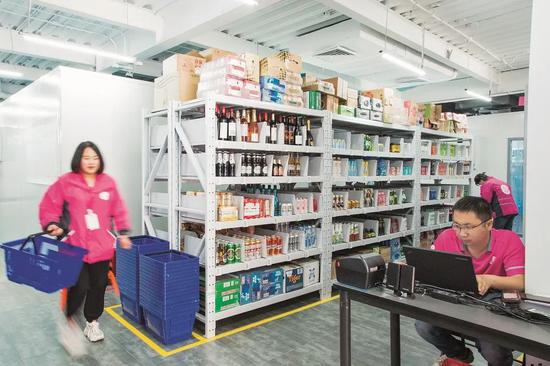 员工在每日优鲜前置仓内进行拣货。图/受访者提供