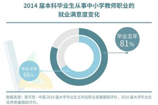 导读:麦可思数据显示,2019届本科毕业生从事中小学教师职业的就业满意度高达73%。虽然该岗位目前工资并不算高,但从近几年数据看,工资水平一直平稳上升。
