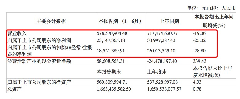 2020年上半年,受新冠疫情影响和汽车行业产销下滑的双重影响,公司上半年经营业绩出现了一定幅度的下滑。公司2020年上半年实现营业收入57857.09万元,较去年同期下降19.36%;归属于上市公司股东的净利润2314.74万元,同比下降25.32%;归属于上市公司股东的扣除非经常性损益的净利润1852.14万元,较上年同期下降28.80%。