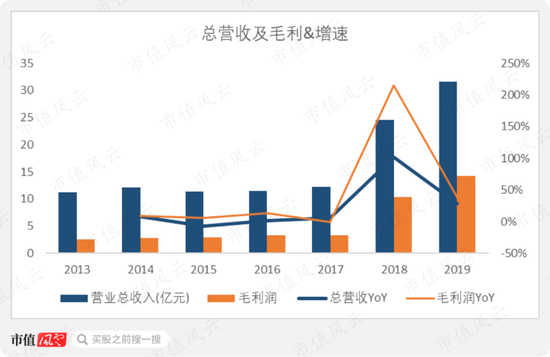2019年,公司传统业务营收12.17亿元,与2014年水平相当,毛利润约为2.7亿元。