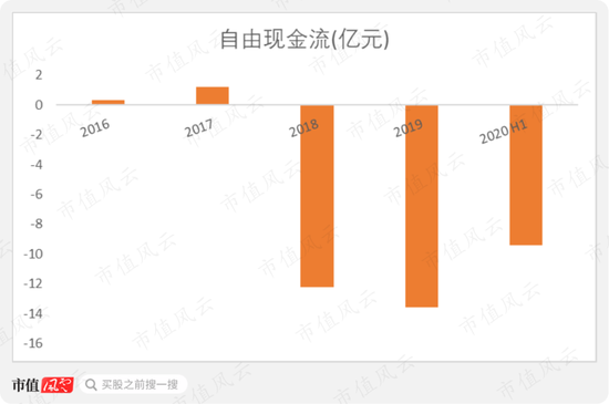 2019年,公司自由现金流为-13.56亿元;2020年上半年为-9.4亿元。
