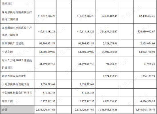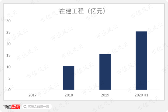 公司在建工程在2017年仅为648.8万元,截至2020年6月30日增至25.43亿元。其中传统业务生产线投入较少,绝大部分在建项目为上述隔膜生产线。