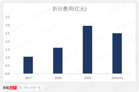 公司折旧费用总额随着生产线建成增长明显,2020年上半年折旧费用合计2.51亿元,已逼近2019年全年2.96亿元的折旧费用。随着更多的生产线落成,折旧费用还将攀升。