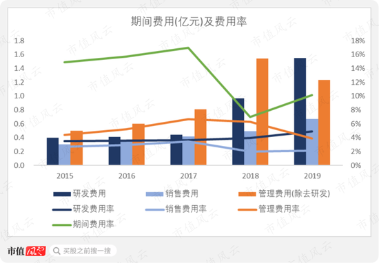 2019年公司研发、管理和销售费用率依次分别为4.9%、3.9%和2.1%,三项费用率合计为10.2%。