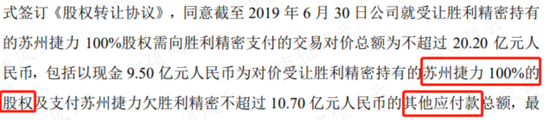 该笔收购以现金收购方式进行,公司最终支付对价为18亿元,包括收购苏州捷力100%的股权和帮助其偿还对当时母公司胜利精密(002426.SZ,*ST胜利(维权))的其他应付款项科目上的负债。
