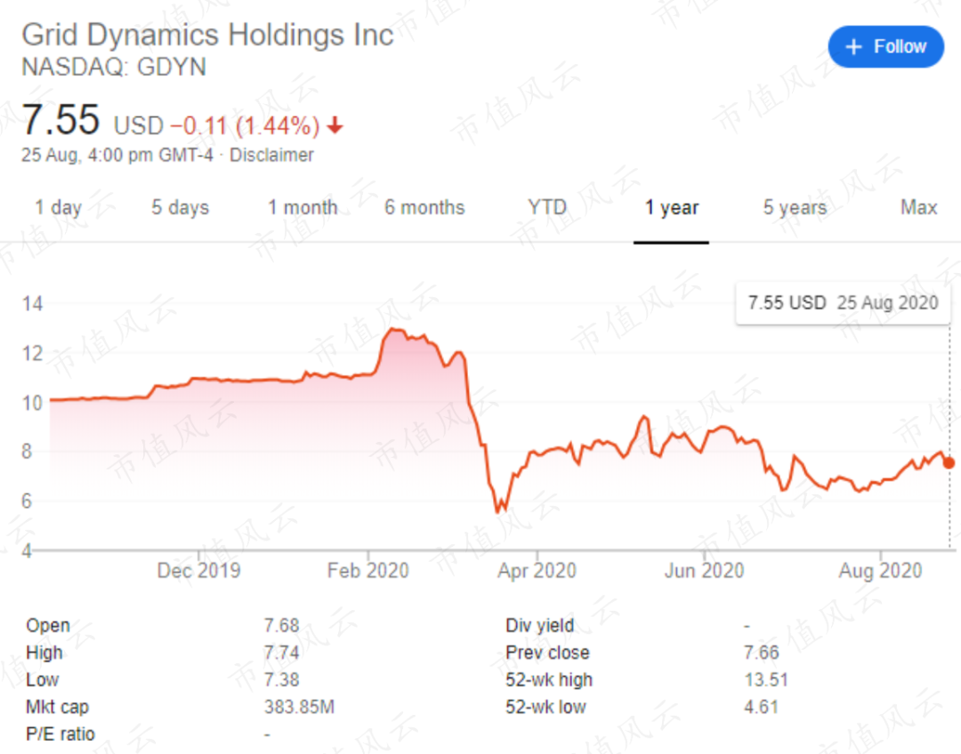 当然,美股市场对于这种没有能力直面上市信披而选择借壳上市(back door listing)的标的,往往也不会太客气:当前(截止2020年8月25日收盘)市值不到4亿美元,每股股价7.55美元,长期低于上市时的10.19美元。