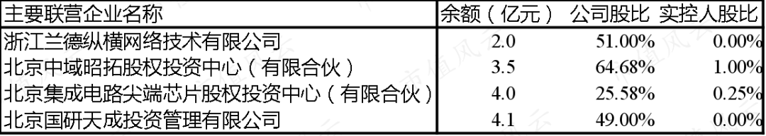 可以看出,两家没有国资背景的联营企业——浙江兰德纵横网络技术有限公司以及北京中域昭拓股权投资中心(有限合伙)(简称“中域昭拓”)的股权占比早已超过50%,正常来说应该并表。