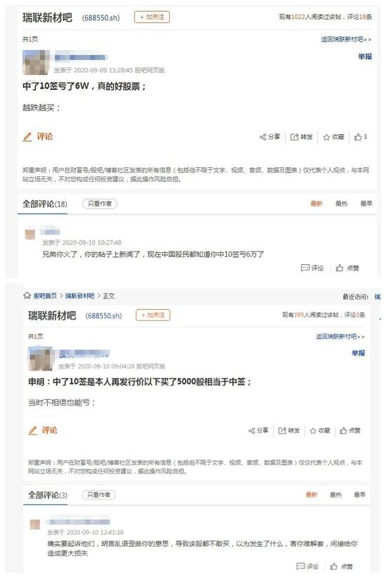 昨日,瑞联新材吧某股民凭借“中了10签亏了6万”小火了一把。媒体相继报道,由此引来诸多股友质疑中10签的真实性。随后该股民发表申明“中了10签是本人在发行价以下买了5000股相当于中签”。同时有人评论表示歪曲了该股民的意思,大家都不敢买,以至于难解套造成了损失。