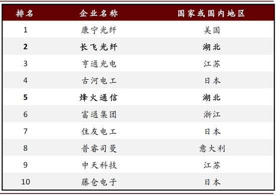 图表:2019年全球光纤光缆最具竞争力企业10强榜单
