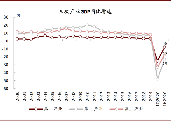 图表: 今年上半年湖北省三次产业GDP同比降幅均较一季度大幅收窄