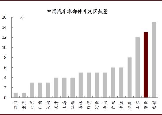 图表:2019年末湖北省有13个汽车零部件开发区