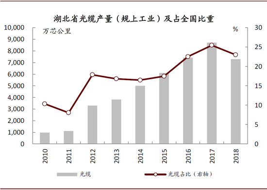 图表:2018年湖北省光缆产量占全国比重超20%