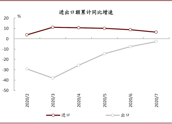 ► 进出口:湖北省1-7月进出口额同比增长1%(一季度下滑21%),年初以来累计增速首次转正,其中进口额同比增长6%,出口额下降3%(一季度下滑38%)。
