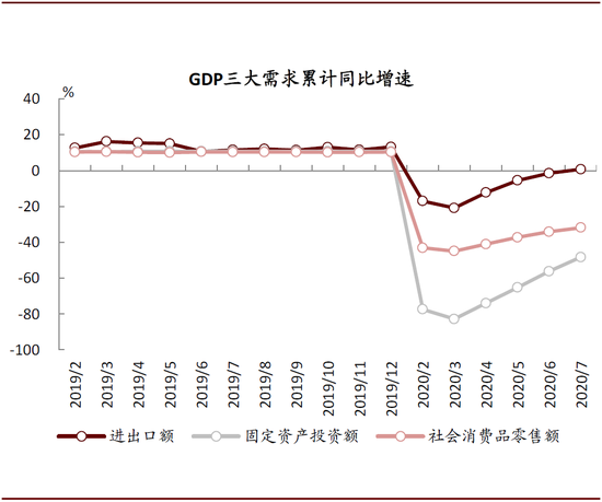 图表: 今年4月以来湖北省GDP三大需求累计同比降幅逐月收窄,其中投资恢复更快