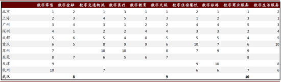 图表:武汉在全国数字产业10大细分行业排名中相对落后(2019年),仍有较大提升空间