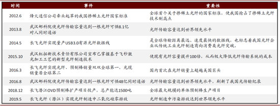 竞争优势强,产业技术创新持续升级。2019年全球光纤光缆最具竞争力企业10强榜单中,长飞光纤、烽火通信分别位居第2位和第5位,我国首个国家级光通信产业基地也落户武汉,竞争实力突出。同时,武汉邮科院、长飞光纤、烽火通信等不断尝试在光纤制造工艺、传输容量、产能上突破已有成果,以长飞公司为例,相对于其传统使用的PCVD工艺,其自主研发的VAD和OVD预制棒制造工艺日益成熟。