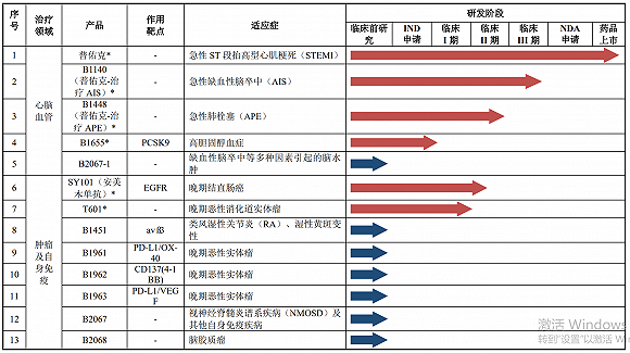 根据天士生物的描述,目前公司主要产品管线拥有19个产品,但除了普佑克之外,剩下的18个是在研产品。在研项目中,普佑克针对急性缺血性脑卒中适应症的拓展B1140处于临床III期总结阶段,针对急性肺栓塞适应症的拓展B1448处于临床II期总结阶段;其他在研产品中,SY101和T101处于临床II期阶段,T601处于临床I/IIa期阶段,B1655处于临床I期阶段,其余12个目前均处于临床前研究阶段。