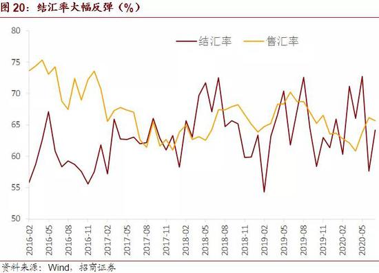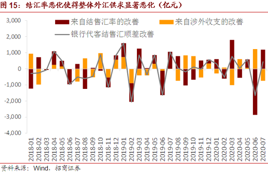 7月我国外汇市场供求形势有所改善,虽然涉外收支有所恶化,但是结汇率大幅回升,与人民币汇率的上升一致。