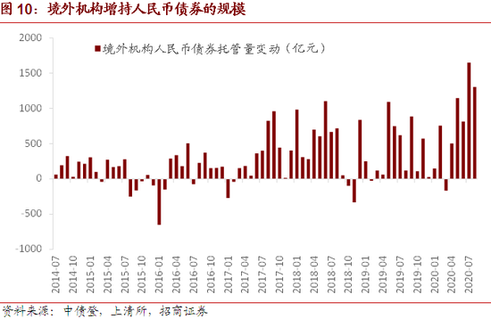8月份单月,境外机构在中债登与上清所合计增持1304亿元人民币债券,增持情况小幅下降,境外机构截至2020年8月末持有的人民币债券规模为28029亿元。