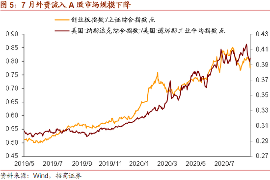 美股和美元流动性因素主要对A股产生两点影响。