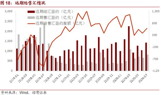 7月远期净结汇签约594亿元,较上月上升212亿元,好于往年同期水平。