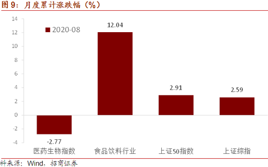 8月份A股市场小幅上涨,食品饮料板块大幅跑赢上证50,医药生物有所调整。