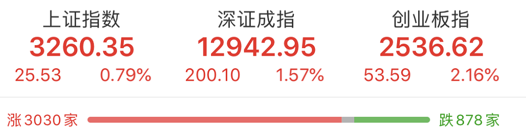 连续两日凶狠下跌之后,大盘缩量反弹。截至收盘,沪指涨0.79%报3260.35点,深成指涨1.57%,创业板指涨2.16%,创业板综指涨2.36%。