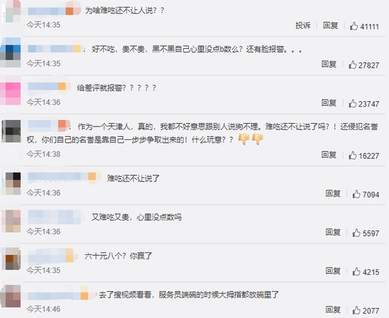 @焰火即逝:这个人已经很客观,很委婉了呀,说不好吃有什么问题吗?商家还报警,活久见。。