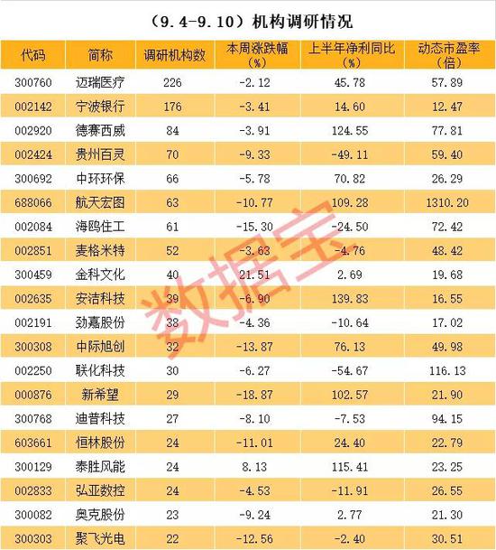 其他较多机构调研的个股还有宁波银行、德赛西威、贵州百灵等,均获得了50家以上机构调研。8月底股价再创历史新高的宁波银行,获得176家机构调研。在调研中,机构主要就经营机构布局规划、业务发展主要方向等问题就行了回答。