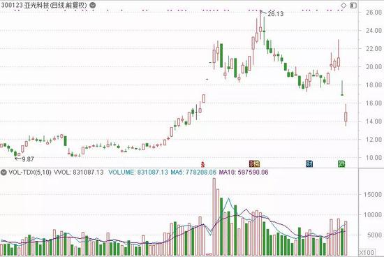 受此消息影响,9月10日开盘后,亚光科技跳空低开后一度反抽,随后又被汹涌的卖盘砸到跌停板,以20%的跌幅收盘。9月11日,公司股价又瞬间触及20%的跌停板,但随后股价有所反弹,最终收盘跌幅收窄至10.95%。
