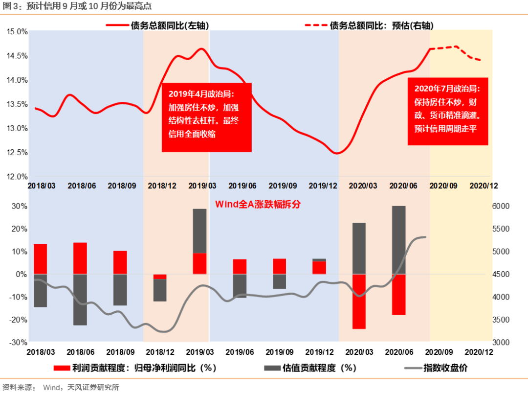 向前看,预计信用周期9月或10月份为最高点,但大概率不会像2019年4月之后大幅收缩:(1)专项债9、10月发行规模可能下降但降幅有限,而2019年4月地方政府债发行规模大幅收缩。(2)房企“345新规”试点,房企加大销售回款,居民中长期信贷预期维持。(3)中美贸易摩擦升级、疫情尚未结束、水灾等因素,经济仍需政策托底。