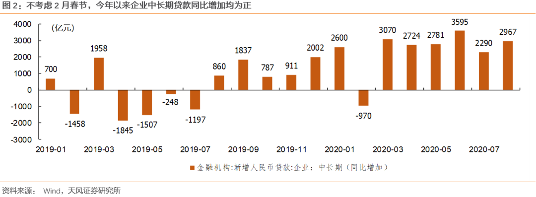 (3)企业信贷端:企业中长期贷款不会再像2019年4月一样大幅收缩。2019年4月监管机构严控资金流向,企业短期、中长期贷款均大幅收缩。而疫情后经济快速修复,不考虑2月春节,今年以来企业中长期贷款同比增加均为正,支撑信用扩张。后续来看,中美摩擦持续升级,从科技领域的摩擦已经扩展至全产业链,再考虑到疫情尚未结束叠加水灾,经济仍需政策托底。因此,我们预计企业中长期贷款不会再像2019年4月一样大幅收缩。
