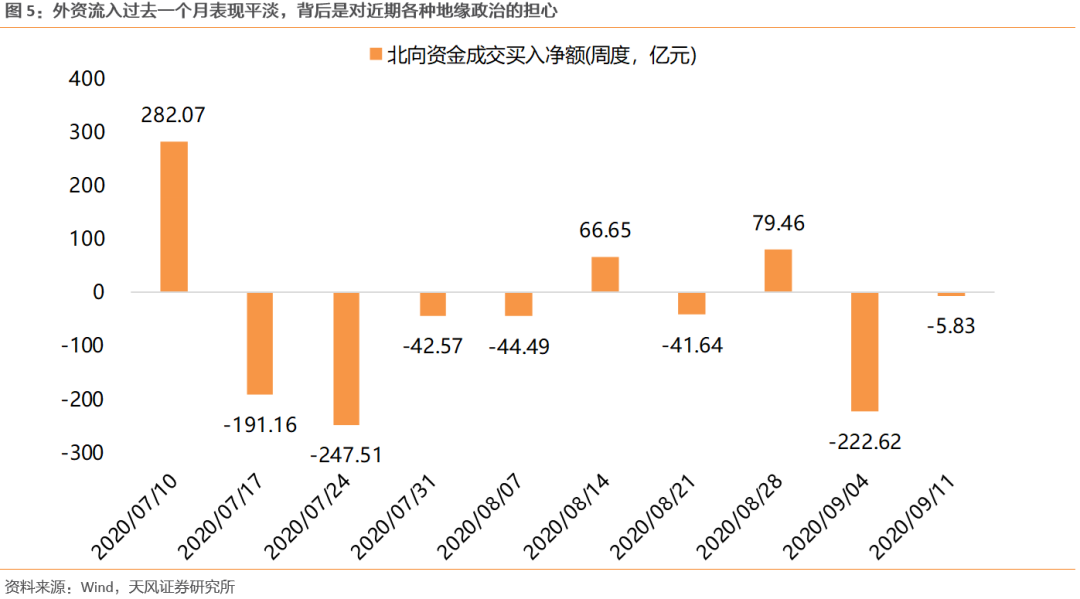 随后是外资的钱,虽然汇率升值,前期美股上涨,但仍然大幅流出,我们理解背后是对近期各种地缘政治的担心。