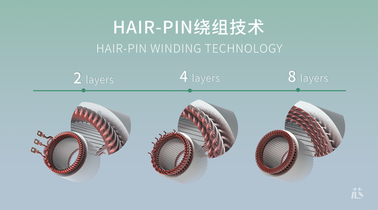 ER6 搭载着上汽最新的 E1 电机。相比上代 E0 电机,E1 电机采用同轴输出布置,整体的集成化程度更高,体积大为紧凑化。对电动机非常重要的线圈缠绕方面,E1 电机引入了 8 层 Hair-Pin 绕组方式,绕组层数比上代翻倍,提升功率密度的同时也减小了体积。