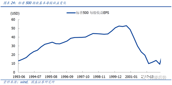 1995年,标普500指数每股收益达到30以上,且在这一阶段期间持续上涨,上市公司整体盈利能力强劲。
