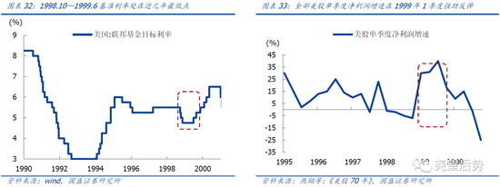 美股净利润增速自1999年2季度开始强劲反弹,三季度的增速继续加快,在四季度达到增速顶点。
